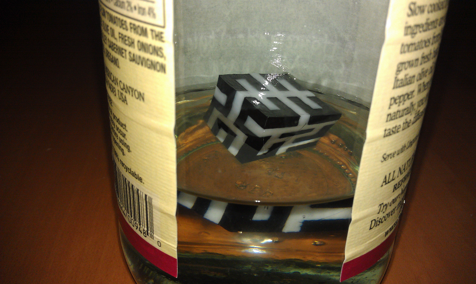 I have been working with HIPS (High Impact Polystyrene) plastic from Filaco, printing in combination with ABS. When printed as a tearaway support structure, HIPS can be easily torn from the ABS – leaving an even finish behind. The real power, though, comes from the ability to remove the HIPS support material by dissolving it away. HIPS is soluble in a chemical called Limonene. When a print is placed in a bath of Limonene, the HIPS portions are completely dissolved away – leaving behind just the ABS sections. This opens up the potential for moving parts and more complicated structures to be printed in one print instead of multiple.
